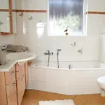 Ferienwohnung Ferienhaus Woerrstadt erbjuder gästerna vardagsrum, balkong och kök, samt moderna bekvämligheter som tvättmaskin. Gästerna på det här boendet erbjuds ett badrum med badlakan och handdukar. Det finns också en separat toalett och en dusch.